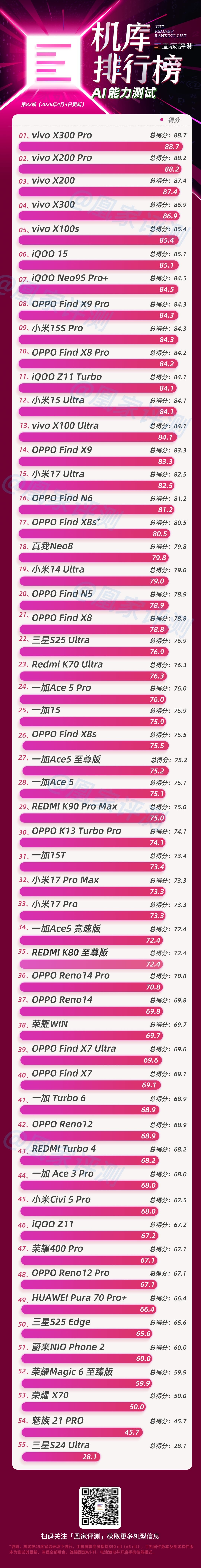「机库排行榜」是基于凤凰网评测对消费者手机使用习惯的观察,建立实际测试模型,并通过大量实测数据得出的手机测试排名榜单,旨在通过客观测试数据,为消费者带来最新产品的消费参考。